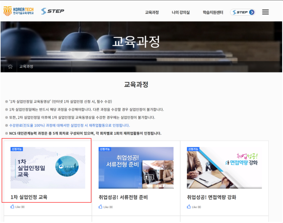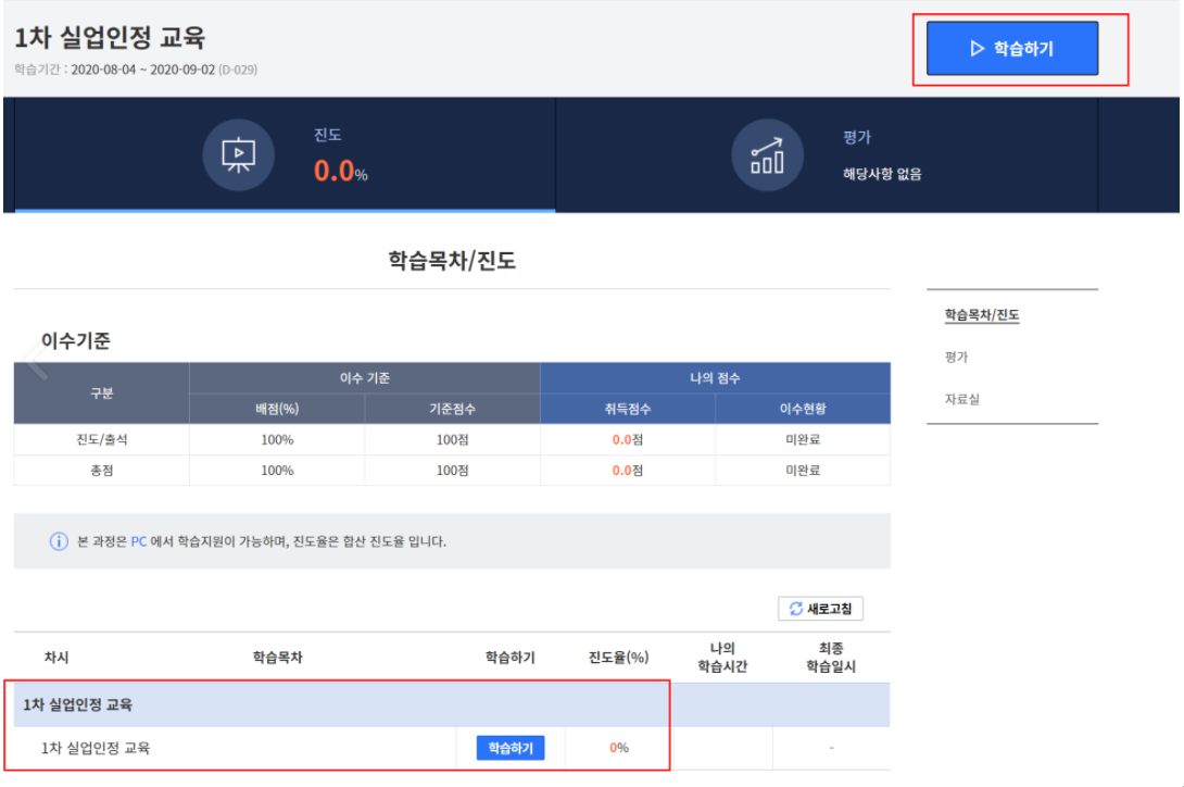 1차 실업인정대상기간(구직활동기간)에 하셔야 하고 수강은 PC로 하셔야 합니다.(모바일 불가)
