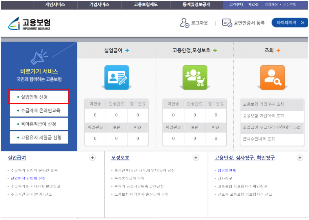 1차 실업인정 교육동영상 따라하기 고용보험 열기 (클릭)