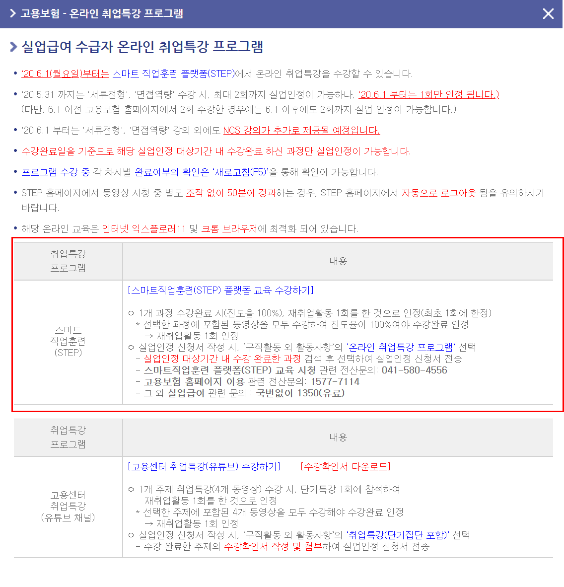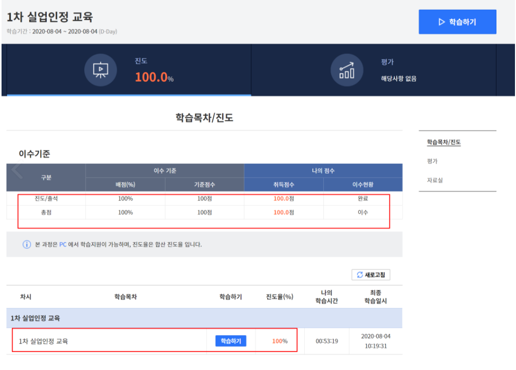 1차 실업인정대상기간(구직활동기간)에 하셔야 하고 수강은 PC로 하셔야 합니다.(모바일 불가)
