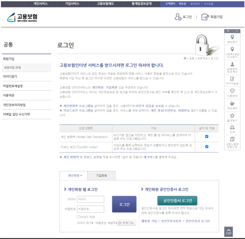 ( 공인 인증서 등록을 먼저 하셔야합니다.)