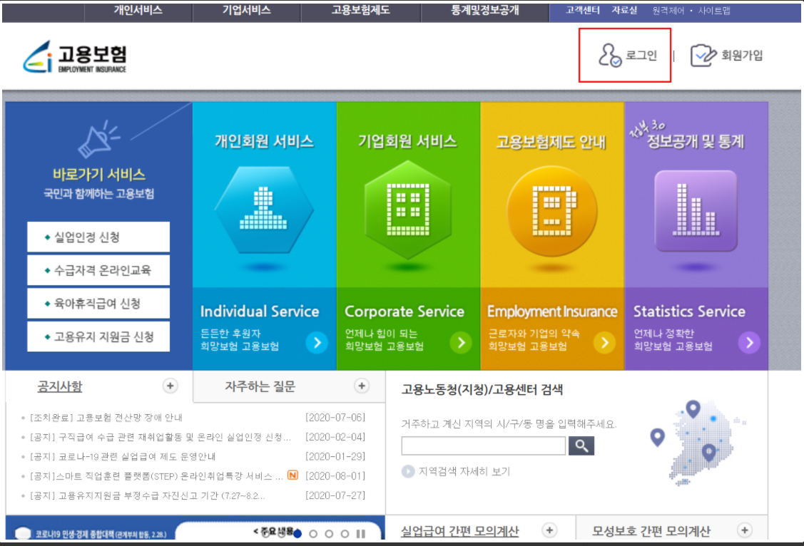 1차 실업인정 교육동영상 따라하기 고용보험 열기 (클릭)
